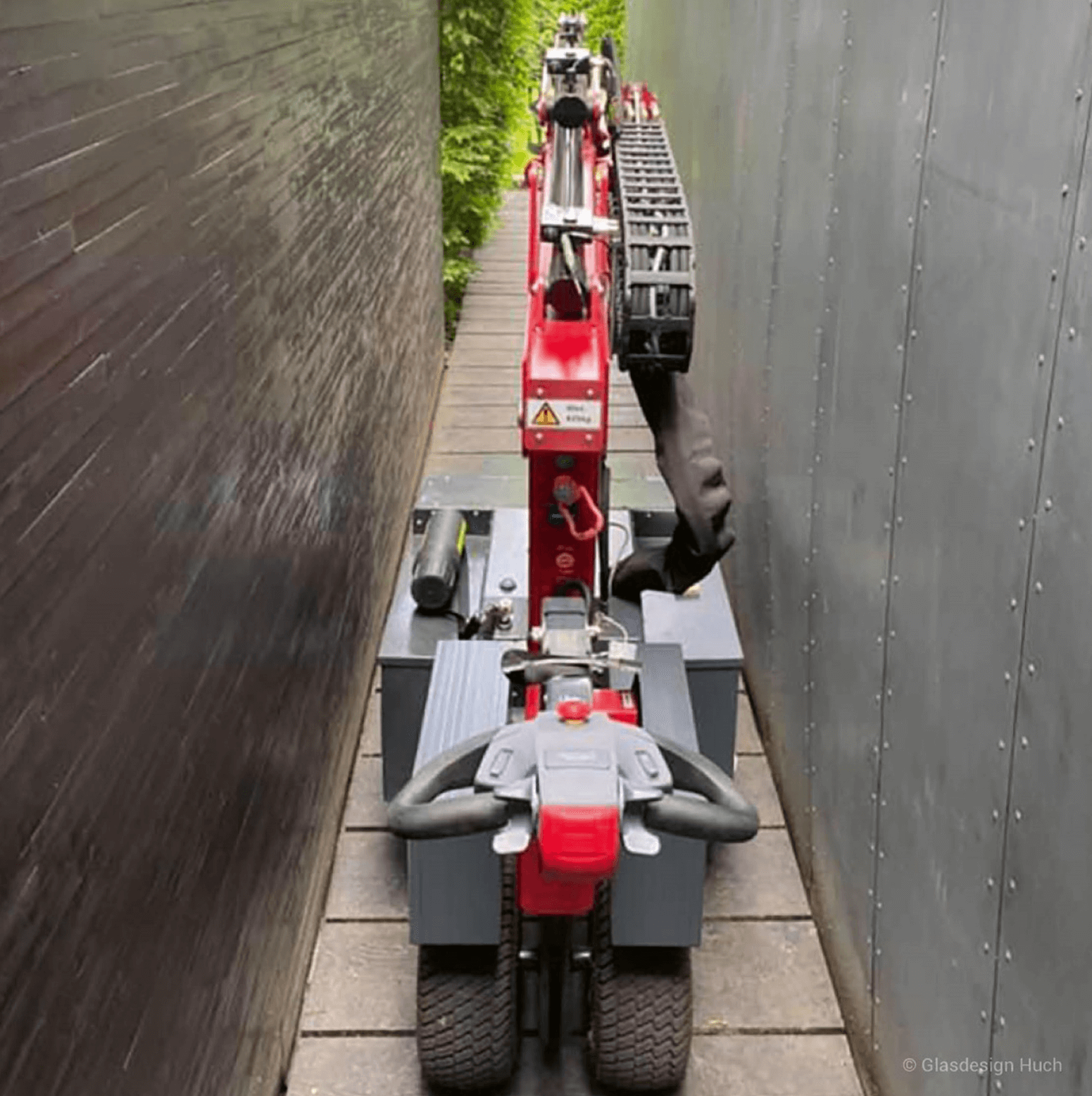 Der Glassworker GW625 eignet sich perfekt für Bauvorhaben mit großen Glas- oder Fassadenelementen, die eine Tragkraft bis 625 kg erfordern. Das Entladen, Transportieren und Installieren von großen Glasplatten, auch über unebenen Boden vor Ort, ist unsere Passion. Dank seiner Breite von nur 83 cm passt dieser Glasmontagekran auch durch enge Flure, Türen und Türöffnungen und kann dabei vertikale Montagen bis zu 3,10 m und bis zu 3,60 m über Kopf durchführen. Perfekt abgestimmte stufenlose Antriebseinheit, mit dreidimensionaler Steuerungstechnik, einer individuell konfigurierbaren Vakuumsauganlage und eine serienmäßige Funkfernsteuerung, das sind Ausstattungsdetails, die für sich sprechen. Mit seiner optimalen Traktion überzeugt der Hebelift GW625 auch im Außeneinsatz. Außerdem verfügt er über eine 12 V Kfz-Steckdose.